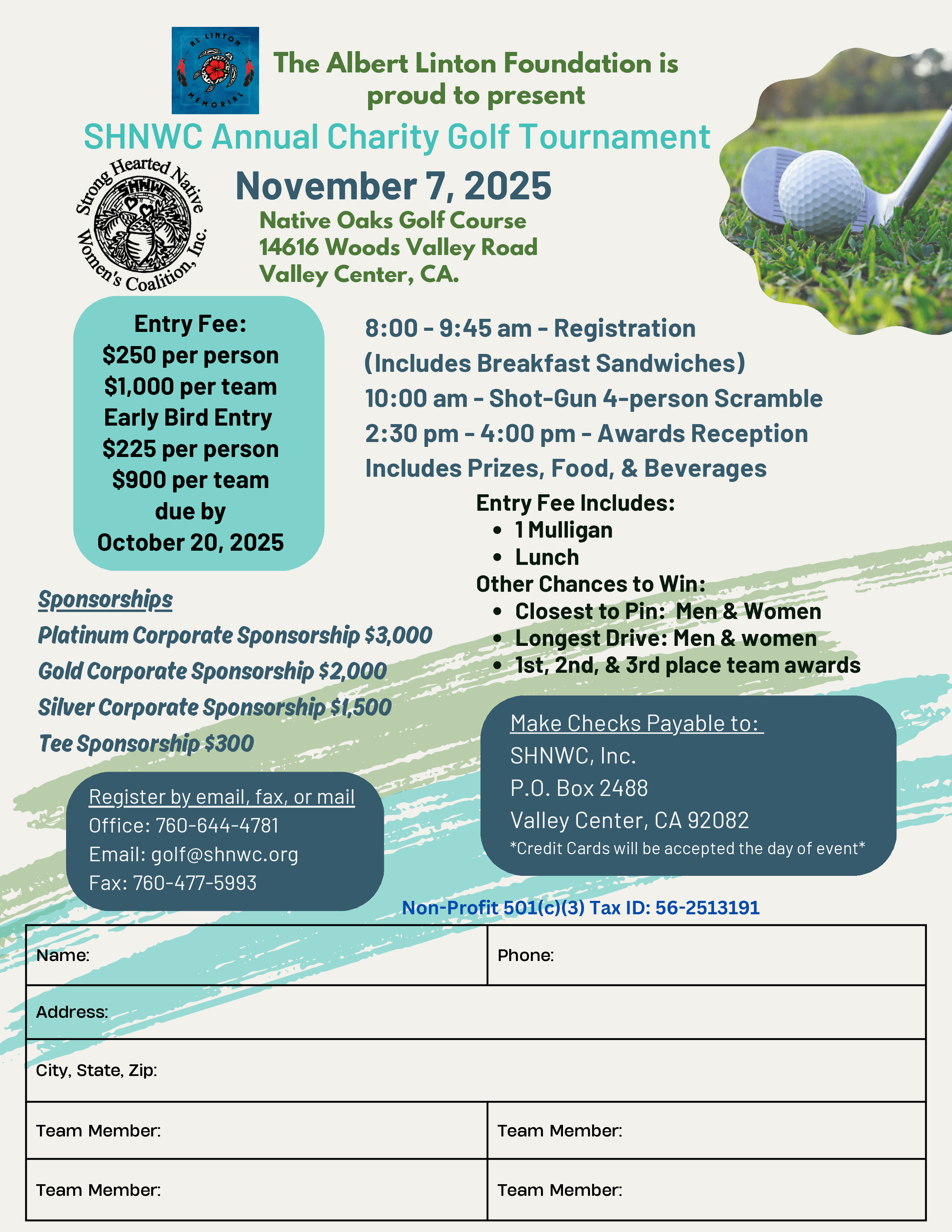 The SHNWC Annual Charity Golf Tournament brings golfers together to make a difference. Proceeds benefit the Albert Linton Foundation and its mission to provide scholarships for students in need.